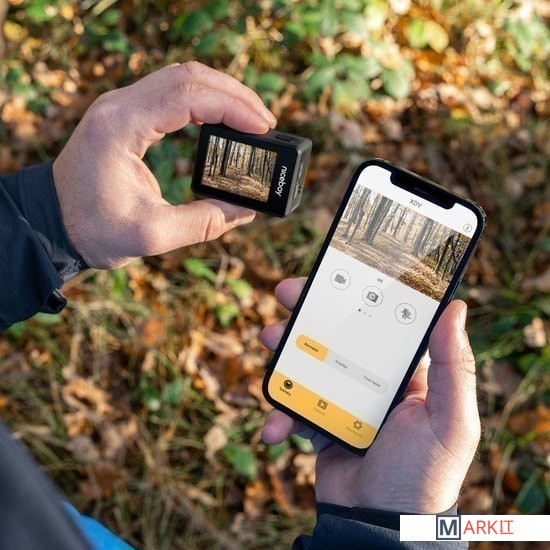 Камера обладает разрешением FullHD при 60 кадрах в секунду или интерполированным 4K пр 30 кадрах в секунду. Она обладает такими функциями, как замедленная или покадровая съемка, и отлично фотографирует – фотографии имеют разрешение до 16 Mp. Ею можно управлять по Wi-Fi через приложение в телефоне, а любители водных видов спорта могут с помощью чехла снимать под водой.