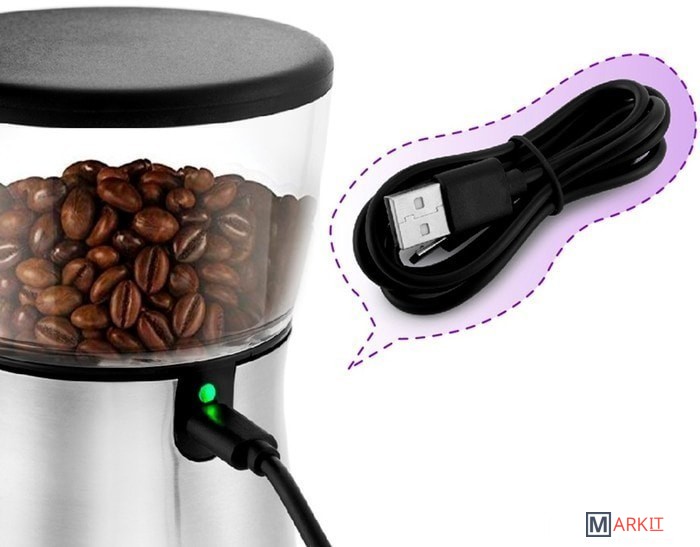 Мельница заряжается от розетки или от съёмного аккумулятора и имеет micro USB-разъём. Чтобы начать работу мельницы, просто нажмите на выключатель. Мельница будет работать, пока вы его не отожмёте.