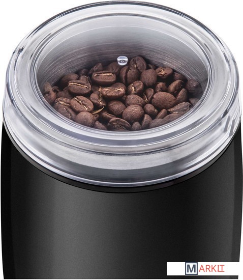 Предназначена для размалывания кофе в зёрнах, орехов, трав, мака и некоторых видов специй.Чаша на 60 граммов кофейных зерен, которой хватает на 12 чашек кофе.Большая кнопка питания, обеспечивающая простоту эксплуатации.Противоскользящие ножки.