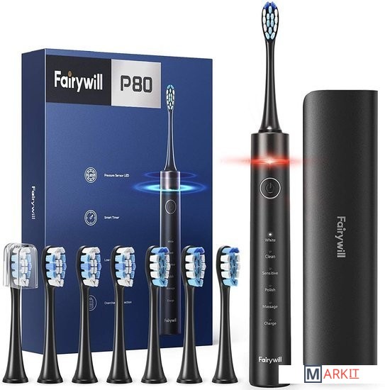 Markit » Электрические зубные щетки и ирригаторы » Электрическая зубная щетка Fairywill P80 (черный, 8 насадок)