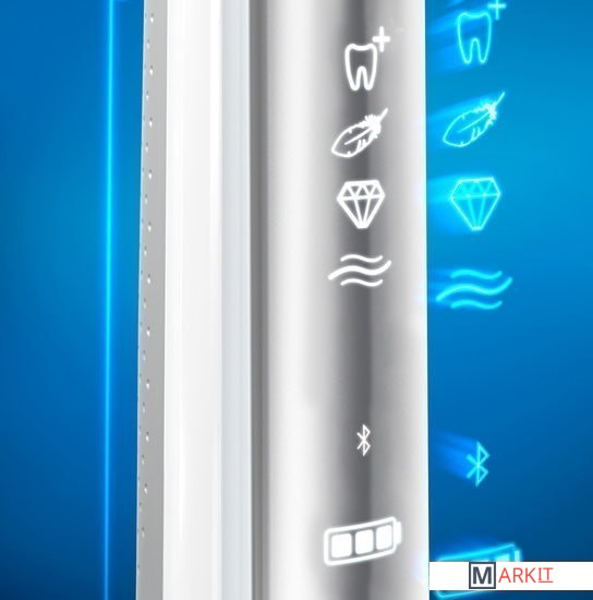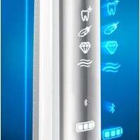 Зубные щётки Oral-B снабжены специальными синими щетинками Indicator, которые обесцвечиваются наполовину, напоминая о необходимости замены щетки.LED-подсветка щеткиФункция определения зоны чисткиУсовершенствованный датчик давления12 цветов подсветки кольца SmartRingОбновленный дизайнДержатель для смартфона в комплекте