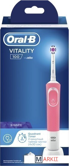 Markit » Электрические зубные щетки и ирригаторы » Электрическая зубная щетка Oral-B Vitality 100 3D White D100.413.1 (розовый)