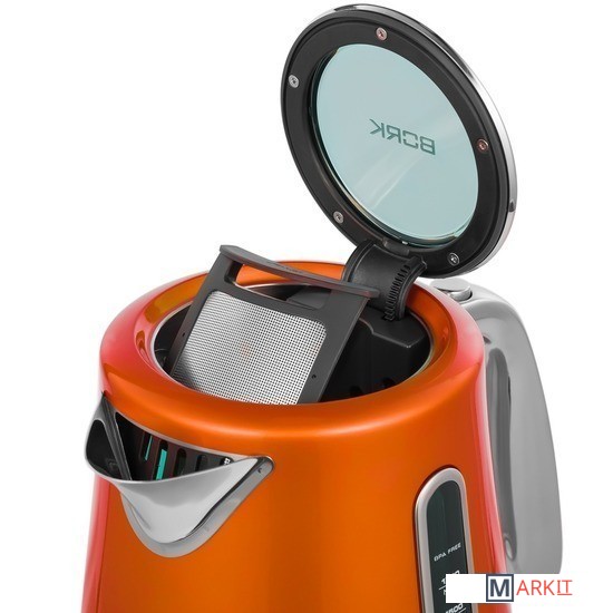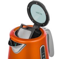 Стальной корпус оригинальной формыКолба чайника из нержавеющей стали отличается прочностью и долговечностью. Изящная модель в стальном корпусе с хромированной ручкой отлично дополнит интерьер вашей кухни.Съёмный металлический фильтрФильтр защищает от попадания накипи при наливании воды из чайника и благодаря высокой износостойкости материала сохраняет свои свойства на долгие годы.Плавное открывание крышкиТакой механизм исключает разбрызгивание горячей воды при открывании чайника. В сочетании со звуковой индикацией и подсветкой этот элемент делает использование чайника комфортным и безопасным.