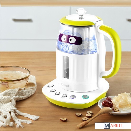 Электрический чайник Kitfort КТ-6129 может не только вскипятить воду, но и нагреть её до температур: 40, 70, 85 и 100°С, что очень удобно при заваривании различных сортов чая. У чайника есть функция поддержания температуры в течение 2 часов.Благодаря панели управления с 4 температурными режимами вы можете установить необходимую температуру для каждого сорта чая. Температура 40 °С пригодится для приготовления детского питания.В чайнике есть фильтр для заварки. Вам нужно только засыпать чайные листья в фильтр и залить воду. Чайник сам нагреет воду до нужной температуры и заварит чай в соответствии с выбранным сортом чая.Крышка чайника полностью съёмная. Это удобно для залива воды и очистки чайника. Фильтр крепится к крышке и легко моется после использования.Чайник КТ-6129 моментально притягивает взгляды, и это неудивительно, ведь ручка крышки чайника выполнена в виде бриллианта.Наша техника порадует вас не только своим функционалом, но и интересным дизайном! В любой момент вы можете отклеить креативный стикер без вреда для поверхности.