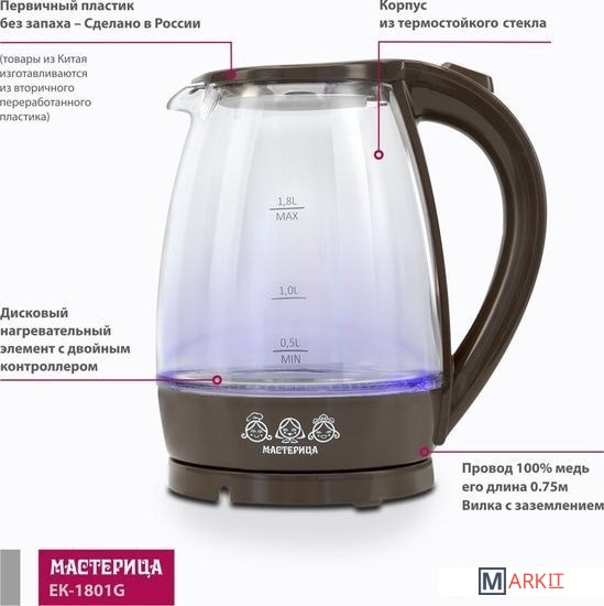 Markit » Электрочайники и термопоты » Электрический чайник Мастерица EK-1801G (коричневый)