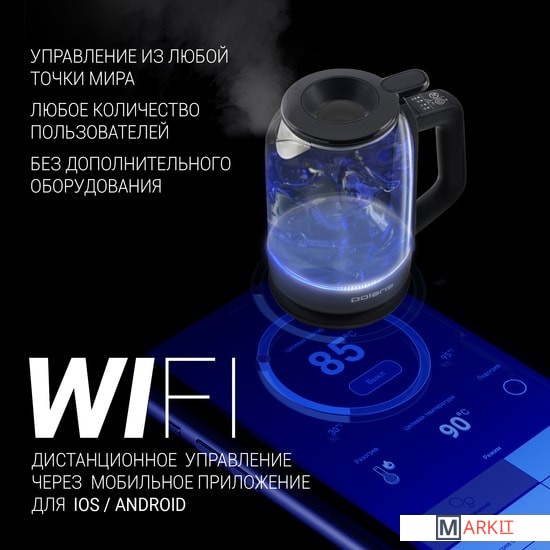 Markit » Электрочайники и термопоты » Электрический чайник Polaris PWK 1712CGLD Wi-Fi IQ Home