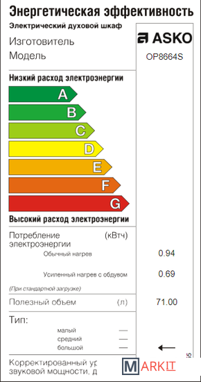 | Объём духового шкафа | 71 л |