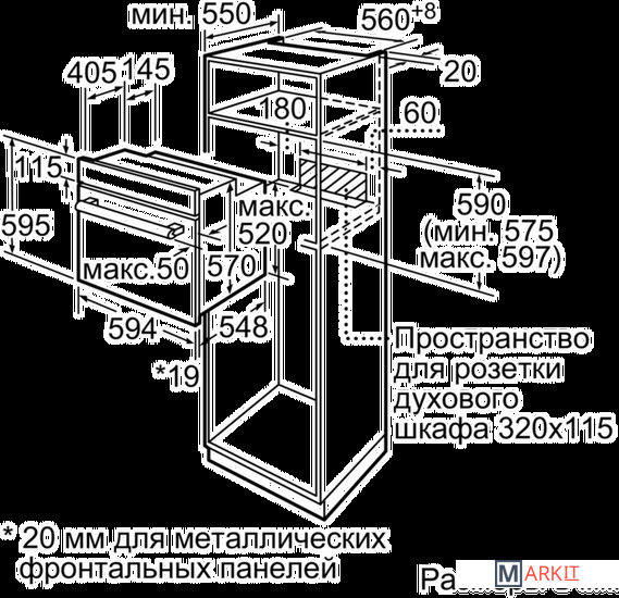 | Размеры ниши для встраивания |