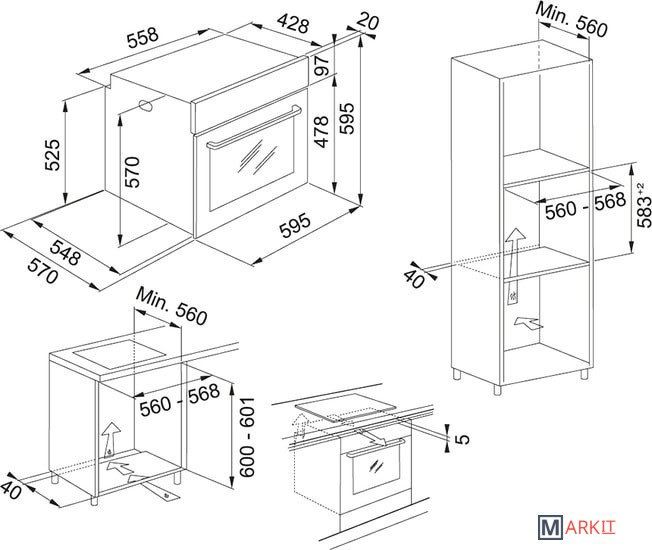 Многофункциональный духовой шкаф. Тангенциальное охлаждение. Холодная дверца. Плавное открытие и закрытие дверцы. Внутренняя камера из стали с эмалью легкой очистки. В комплекте 2 решетки, 1 противень, 1 глубокий противень. 9 режимов работы:верхний и нижний нагрев, верхний/нижний нагрев и конвекция, гриль, турбогриль, размораживание, нижний нагрев, конвекция, приготовление хлеба, очистка паром.