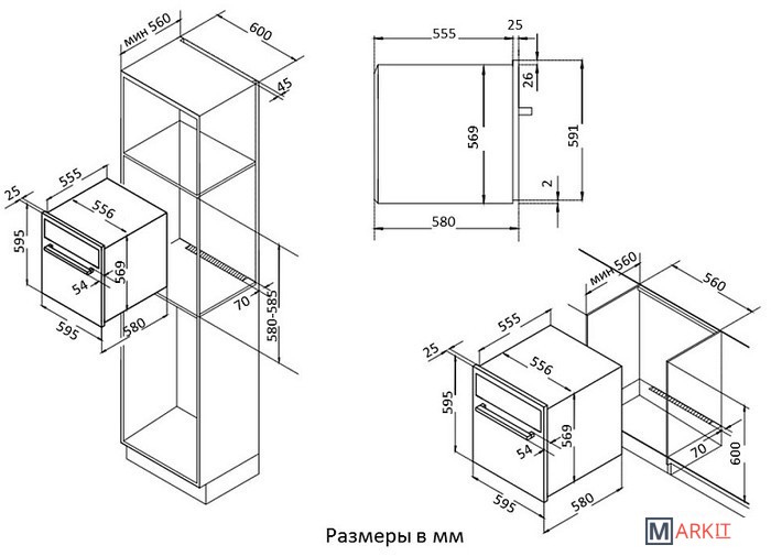 | Размеры ниши для встраивания |