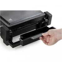 Размер рабочей поверхности 40 x 25 см, расширяемый до 60 x 25 см, благодаря поворачивающейся на 180° крышке гриля