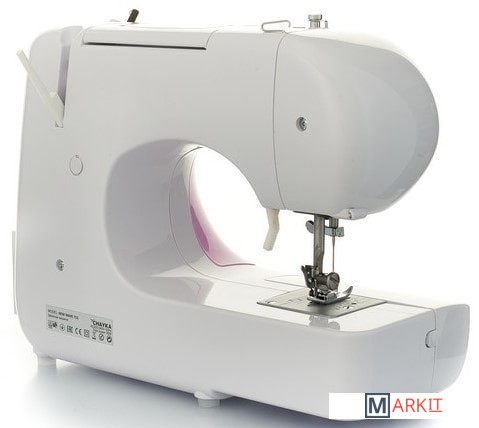 | Комплектация | - Универсальная лапка;- Шпульки – 3 шт. (2 шт. и 1 в машине);- Вспарыватель/щёточка для чистки пыли;- Фетровая прокладка;- Рамка для петель;- Набор игл;- Мягкий чехол |