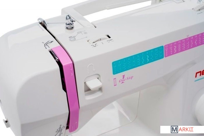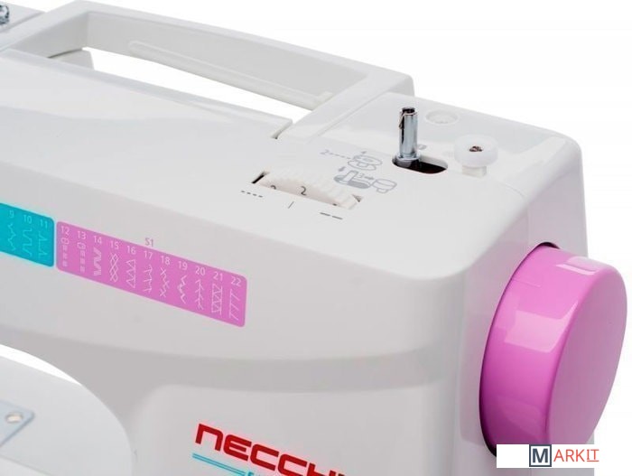 Necchi 5423A самая младшая, и соответственно, самая недорогая из моделей, в которую производитель поставил функцию полностью автоматического изготовления петель для пуговиц. Necchi 5423A сама вышьет петлю под нужный размер за один прием. Нужно только вставить пуговицу, в специальную лапку для выметывания петли. А в чем сбалансированность – спросите Вы? А в том, что помимо автоматической петли, к начальным комплектациям были добавлены еще и полноценные 22 швейные операции. Да еще и возможность дополнительно увеличить их число, используя функцию регулировки длины стежка, которая тоже уже есть, и наряду с изготовлением петель, сделает возможным заняться шитьем уже профессионально.
