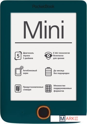 Электронная книга оснащена 5 дюймовым дисплеем E- Ink. Небольшой вес 131 г. и толщина около 7 мм делают устройство действительно компактным. Быстродействие устройства обеспечивается мощным процессором с тактовой частотой 1 ГГц - перелистывание страниц плавное и равномерное.