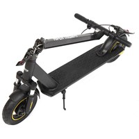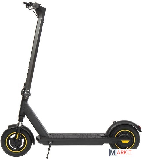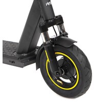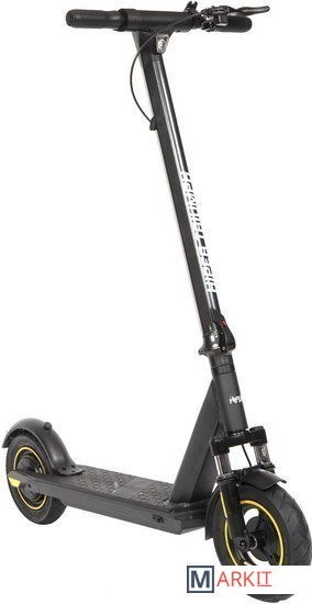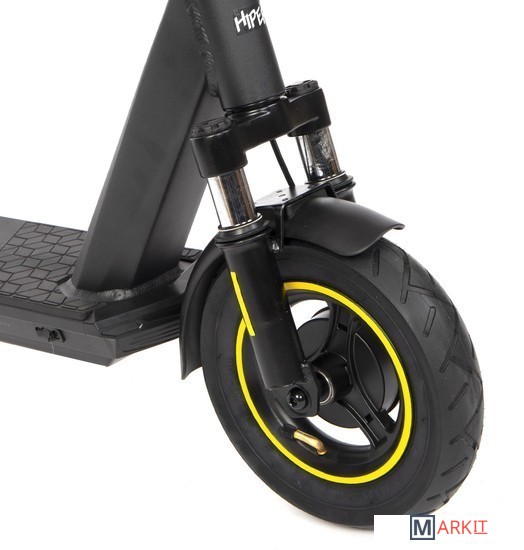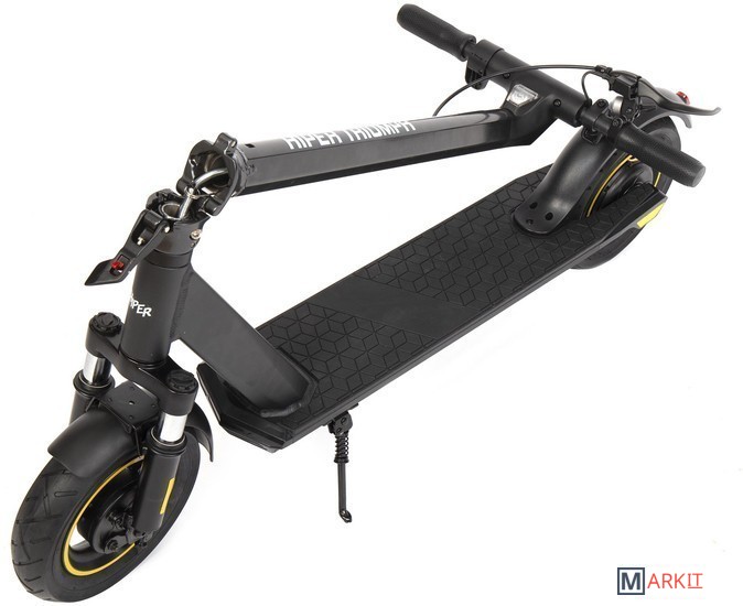 HIPER Triumph T105 Black - это надёжный электросамокат со складным механизмом и задним приводом. Модель отличается высокой прочностью и способна выдержать большую нагрузку.Усиленный мотор обладает мощностью 400 Вт и обеспечивает предельную скорость до 25 км/ч. На одном заряде защищённого аккумулятора нового поколения объёмом 10.4 Ач/ 36 В /375 Втч электросамокат способен преодолеть до 32 км. Комплектное зарядное устройство 42В/2A восполнит ресурс АКБ за 6.5 часов.Для комфортного управления на руле расположен бортовой компьютер с индикацией скорости, пробега, Bluetooth, работы фар и заряда батареи. Через фирменное приложение HIPER IoT открывается расширенный функционал: мониторинг нескольких показателей, настройка опций, анализ ошибок и многое другое. Почувствовать максимальное удобство во время поездки помогут нескользящее покрытие деки и эргономичные грипсы. Мощные фары дают возможность безопасного передвижения в темноте и в условиях ограниченной видимости.Устойчивые 10 дюймовые колёса с надувными шинами способствуют надёжному сцеплению с дорогой и мягкому ходу самоката. Передний амортизатор поглощает неровности трассы и значительно уменьшает тряску. Самокат оснащён барабанным тормозом.Благодаря уровню влагозащиты IPX4 транспортное средство не боится пыли и брызг. Рама самоката выполнена из прочного алюминиевого сплава и выдерживает нагрузку до 130 кг. Допустимый рост пользователя 130-200 см.