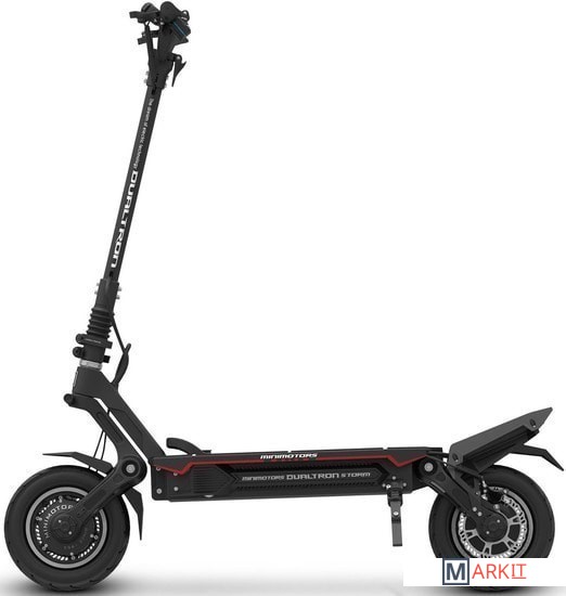 Dualtron Storm - модель является обновлением Dualtron Thunder.Механизм складывания Dualtron Storm улучшен по сравнению с Thunder двойными стяжными кольцами. Больше никаких проблем с рулевой колонкой.Dualtron Storm оснащен полностью гидравлическими тормозами и 160-миллиметровыми дисками для повышения эффективности, рассеивания энергии и великолепного внешнего вида.Рама и ручка Storm изготовлены из алюминиевого сплава 6082-T6.Новинка оснащена регулируемой резиновой подвеской с 45 возможными конфигурациями (9-ступенчатая регулировка амортизатора + 5 видов заменяемых резиновых картриджей).Задний стоп-сигнал и поворотники расположены выше для лучшей видимости.