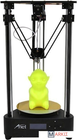 Anet A4 - большой и надежный дельта-принтер с модульной структурой, который необходимо самостоятельно собрать. Подойдет для знатоков 3D печати, т.к. настраивать и калибровать его придется самостоятельно. Тем не менее его структура такова, что сборка не займет больше 10 минут.Точность позиционирования головки и стабильность печати обеспечиваются крепкой стальной рамой и металлическим печатным столом. Также вы можете регулировать натяжение ремня подачи с помощью регулирующего винта.