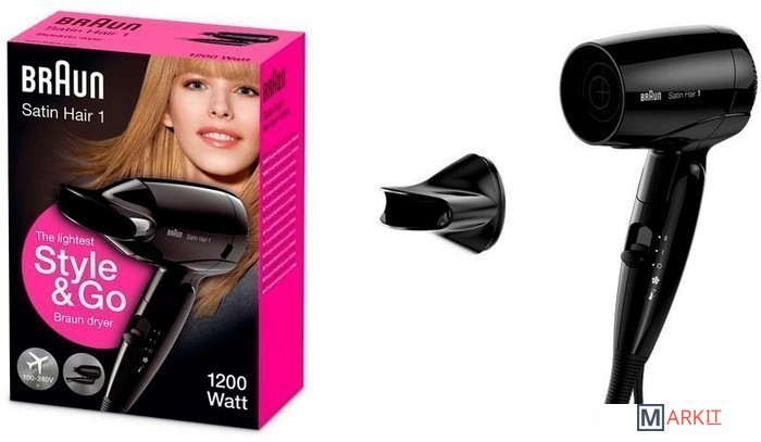 Модель HD 130 – компактный и надежный вариант для частых путешествий. Фен Braun самый мощный в серии Satin Hair 1, поэтому он никогда не подведет и позволит выглядеть идеально в любой ситуации.Устройство немецкого бренда удобно хранить и брать с собой в любую поездку. Благодаря складной ручке прибор помещается даже в маленькую дорожную сумку и не занимает много пространства. Корпус из инновационного материала и профессиональная насадка весят мало, а широкий диапазон входного напряжения (от 100 Вт до 240 Вт) позволяют использовать фен практически во всех странах мира. Дополнительный плюс модели – наличие петли для удобного хранения устройства в домашних условиях.Прибор HD 130 работает в двух скоростных режима. Женщина может сама выбирать между быстрой сушкой головы и профессиональной укладкой. Переход из первого режима во второй совершается нажатием одной кнопки. Красивую укладку и видимый объем обеспечивает профессиональная насадка. В серии Satin Hair 1 съемный концентратор сделали более узким для точной фиксации воздушных потоков на отдельных участках волос.