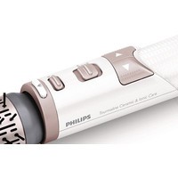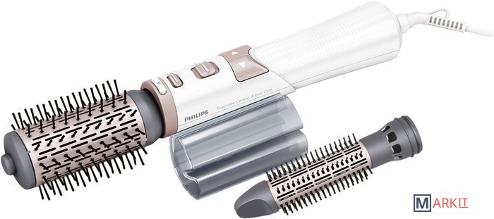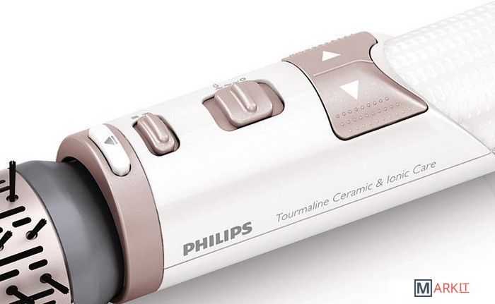 Гладкие и блестящие волосы благодаря системе ионизацииСистема ионизации высушивает волосы, не электризуя их. Отрицательно заряженные ионы уменьшают спутывание, способствуя закрытию волосяных чешуек, и усиливают блеск и сияние волос. Результат — блестящие и гладкие волосы, сияющие красотой.Турмалиновое керамическое покрытие придает блеск вашим волосамУникальное турмалиновое керамическое покрытие защищает волосы во время укладки. Равномерное распределение тепла исключает появление точек перегрева и делает волосы более блестящими.Щетки вращаются в двух направленияхЩетка вращается в разных направлениях, облегчая процесс укладки и создания разнообразных причесок.Настройка Care для защиты волос во время сушки и укладкиРежим Care обеспечивает оптимальную температуру сушки и предотвращает перегрев. Сила воздушного потока и скорость сушки не меняются, но укладка выполняется при постоянной температуре, оптимальной для волос.