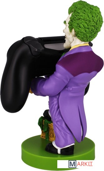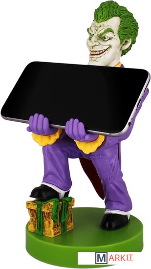 Фигурка-держатель для смартфона, портативной приставки или геймпада. Джокер (c англ. Joker — шутник, балагур) — суперзлодей вселенной DC Comics, главный и заклятый враг Бэтмена. Джокер носит фиолетовый костюм и сражается при помощи предметов, которые стилизованы под реквизит клоуна и иллюзиониста.Биллу Фингеру, Бобу Кейну и Джерри Робинсону приписывают создание Джокера, но их мнения о задумке персонажа различаются, каждый из них выдвинул свою версию событий. По утверждениям Фингера, Кейна и Робинсона, Фингер предложил взять за основу образа Джокера персонажа Гуинплена (человек с обезображенным лицом, на котором постоянно появляется улыбка) в исполнении Конрада Фейдта из фильма «Человек, который смеётся», а Робинсон сделал набросок игральной карты с лицом Джокера.Прошлое Джокера остаётся покрытым тайной до сих пор, несмотря на восьмидесятилетнюю историю персонажа. DC продолжает придерживаться теории Алана Мура о многовариантном прошлом зловещего клоуна. Возможно, даже сам Джокер уже не помнит, кем он был до той ночи, когда он надел Красный Колпак. По признанной канонической версии человек, ставший Джокером (возможно, он был неудачливым комедиантом, а возможно, и гангстером), упал в кислоту, испугавшись Бэтмена, когда в костюме Красного колпака участвовал в ограблении карточной фабрики. В результате он сошёл с ума, обрёл белую кожу, чёрные круги вокруг глаз и зелёные волосы, а на лице у него навсегда застыла улыбка.