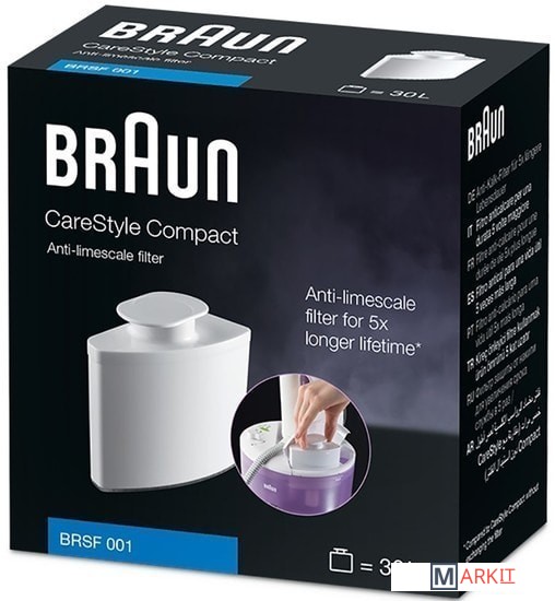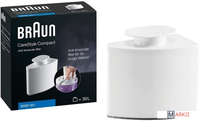 Фильтр Braun BRSF 001 для гладильной системы CareStyle Compact IS2044/IS2043 рассчитан на 30 л и помогает увеличить продолжительность жизненного цикла гладильной системы в 5 раз (в сравнении с гладильной системой без использования фильтра).Пригоден для водопроводной воды.1 картридж = 30лИсходя из расхода 1 литра в час:30 минут в неделю: срок службы фильтра 9 месяцев60 минут в неделю: срок службы фильтра 6 месяцев90 минут в неделю: срок службы фильтра 3 месяцаПодходит к CareStyle Compact.