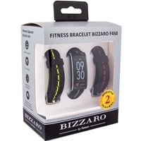 Bizzaro F450 удобный и легкий фитнесс-браслет с вытянутым прямоугольным экраном.Трекер считывает уровень активности в фоновом режиме. На экране отображается количество пройденных шагов, расстояние, потраченные калории. Спортивный режим поддерживает несколько видов актвиности: бег, подъем в гору, велоспорт, прогулка.Так же трекер измеряет пульс, артериальное давление и содержание кислорода в крови.Для синхронизации с мобильным устройством устанавливается специальное приложение «Bizzaro Sport». Здесь можно настроить уведомления о звонках и сообщениях, следить за динамикой по всем измерениям, делиться достижениями с другими пользователями.Комплект включает подарок: два дополнительных чёрных ремешка с цветными контрастными вставками.