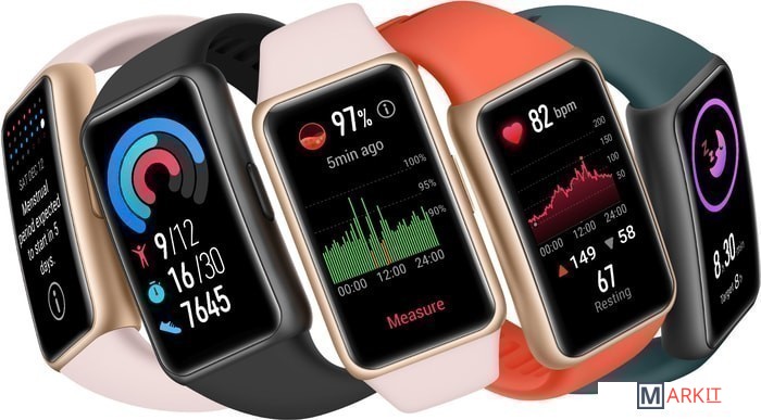 HUAWEI Band 6 оснащен безрамочным экраном 1,47 дюйма AMOLED FullView, рабочая поверхность которого увеличена на 148%, а полезная площадь составляет 64%. Разрешение экрана — 194 х 368, 282 PPI. Эта модель действительно впечатляет.Выберите подходящий стиль. Ремешок HUAWEI Band 6 выполнен в четырех цветах, каждому из которых свойственна особая эстетика. Ремешки, изготовленные из мягкого плотного силикона, очень легкие и отталкивают загрязнения. Браслет весит всего 18 г и почти не ощущается на руке.Фитнес-браслет HUAWEI Band 6 отличает длительное время работы без подзарядки (2 недели при обычном использовании3 и 10 дней — при интенсивном5). Когда заряд батареи закончится, вы сможете подзарядить браслет за 5 минут с помощью магнитного зарядного устройства. Этой зарядки хватит на 2 дня работы. Не беспокойтесь об уровне заряда батареи.