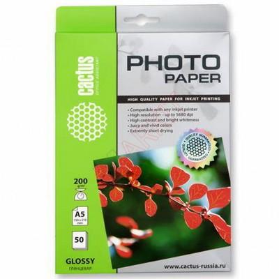 Фотобумага Cactus (CS-GA520050) A5 200 г/м2, глянцевая, односторонняя, 50 листов Код: 40442