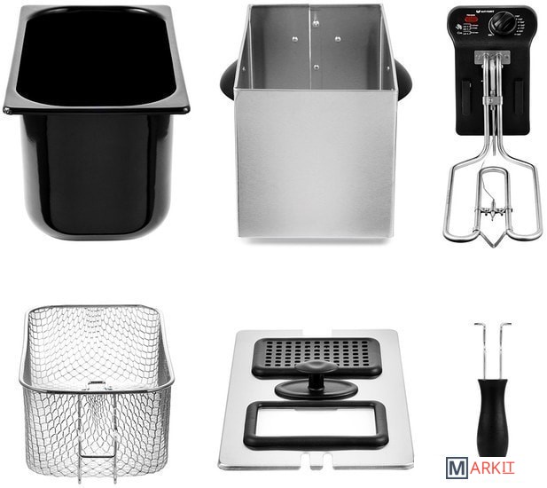 | Съемная чаша | (полностью разборная фритюрница для удобства мойки) |