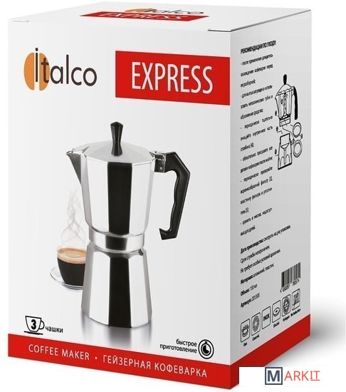 Markit » Заварочные чайники, кофеварки, френч-прессы » Гейзерная кофеварка Italco Express (3 порции)