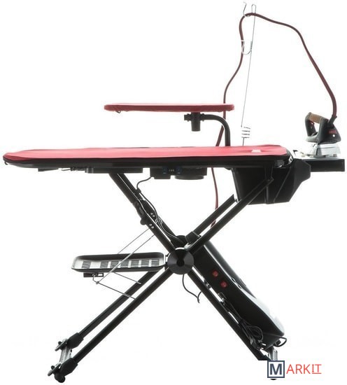 Общая мощность 1870 Вт: - парогенератор 1000 Вт; - утюг 850 Вт; - вентилятор 20 Вт.Поддув гладильной доски. Отвод пара. Размер гладильной доски: 110x37 см. Высота гладильной доски в рабочем состоянии: 80-92 см. Полка для белья.