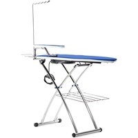 Общая мощность 2350 Вт: - парогенератор 1100 Вт; - утюг 800 Вт; - отпариватель 800 Вт; - гладильная доска 425 Вт; - вентилятор 20 Вт.Поддув гладильной доски. Отвод пара. Размер гладильной доски: 120x45 см. Высота гладильной доски в рабочем состоянии: 80-92 см. Полка для белья.