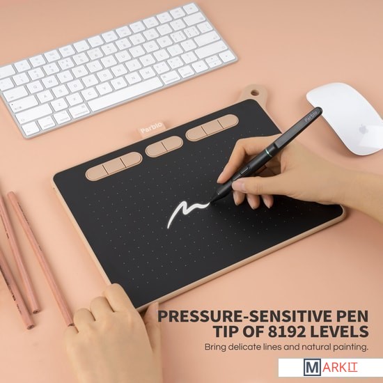 Планшеты серии Parblo Ninos M идеально подходят для начинающих рисовальщиков. Планшет имеет большие программируемые "горячие клавишы" в верхнем ряду, которые более удобны в использовании. Данная модель оснащена беспроводным двухкнопочным пассивным пером, которое не нужно заряжать, используется Технология беспроводного электромагнитного резонанса. Поддерживается функция наклона пера с углом наклона ± 60 °. Parblo Ninos M поддерживает не только Windows / MacOS, но также поддерживает смартфоны Android или планшеты Android. Совместим с большинством программ для рисования, таких как Photoshop, SAI, Painter, Illustrator, Clip Studio, Krita и т. д. и поддерживает игру OSU. Рабочая область для Ninos M составляет 9 * 5 дюймов. Линейка представлена в трёх цветах на выбор: черный, розовый и зеленый.