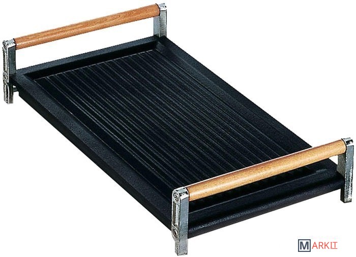 Чугунный гриль, складные ручки (дуб + сталь).