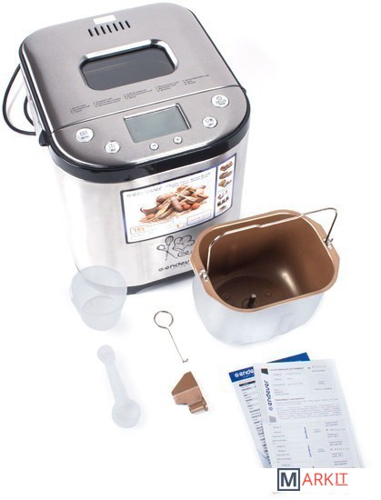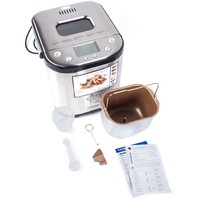 | Комплект поставки | Антипригарная ёмкость для выпечки Мерный стакан Мерная ложка Лопасть для замешивания теста Крюк для извлечения лопасти Руководство по эксплуатации |