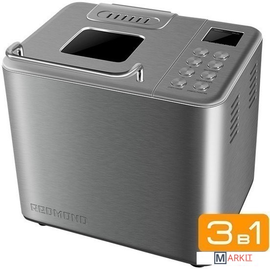 Хлебопечь REDMOND RBM-М1920 Хлебопечь RBM-M1920 — современный многофункциональный прибор для приготовления хлеба и других блюд в домашних условиях.Хлебопечь М1920 приятно удивит 19 автоматическими программами. Теперь можно без труда испечь любимый вид хлеба в домашних условиях, например, цельнозерновой, ржаной или французский. Одним из несомненных преимуществ прибора является антипригарное покрытие чаши. Whitford «Xylan Plus», отличающееся долговечностью и безопасностью.М1920 также оснащена функциями автоподогрева готовых блюд и отсрочки старта программы. Таймер позволит приготовить еду к заданному времени. По желанию в хлеб можно добавить дополнительные ингредиенты, такие, как семечки, орехи или изюм. Хлебопечь оповестит, когда это нужно сделать, звуковым сигналом. Вы будете в восторге от такой практичной техники!КНИГА РЕЦЕПТОВ В ПОДАРОК!