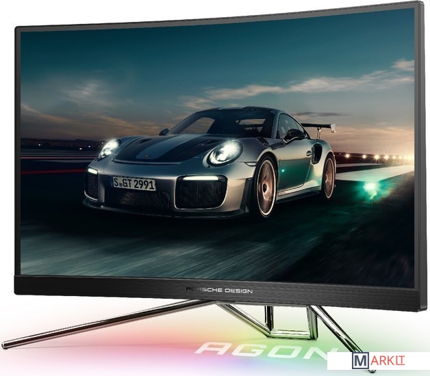 Рама монитора привлекает внимание к его задней части, тогда как переднюю часть выделяет световая полоса, которая меняет цвет в зависимости от ситуации в игре и проецирует на поверхность стола логотип Porsche Design или AGON.Беспроводная игровая клавиатура в комплекте. Горячие клавиши на клавиатуре позволяют быстро переключать настройки дисплея, например, между игровыми жанрами, регулировать FPS и палитру RGB и т. д.