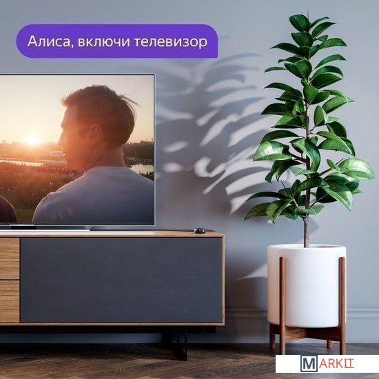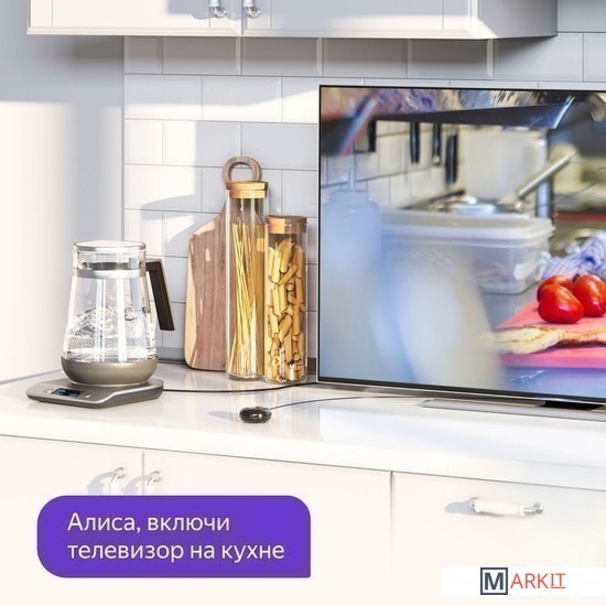 Включает, выключает и настраивает бытовую технику через инфракрасный канал. Управлять Пультом можно через приложение Яндекс или с помощью Алисы — просто скажите ей, что нужно сделать.