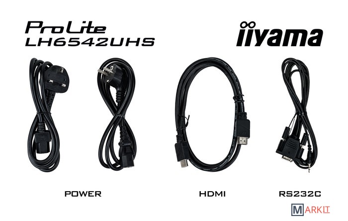 - пульт ДУ- батарейки для пульта ДУ- кабель HDMI- кабель RS-232- кабель питания- документация |