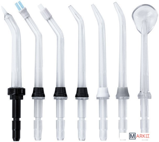 | Насадки | для очистки языка, для чистки межзубных промежутков, ортодонтическая насадка |