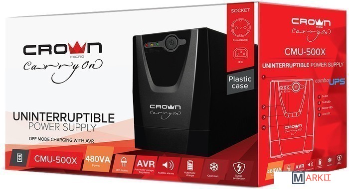 Источники бесперебойного питания CROWN серии "CMU-Х IEC", мощностью от 500 ВА до 1000 ВА являются бюджетным решением для защиты персональных компьютеров от большинства дефектов электросети.