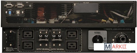 ИБП серии SmartOnline мощностью 6 кВА (200-240 В), работающий в режиме онлайн с двойным преобразованием, в стоечном/вертикальном исполнении высотой 4U, имеет в своей комплектации переключатель на обходную цепь.