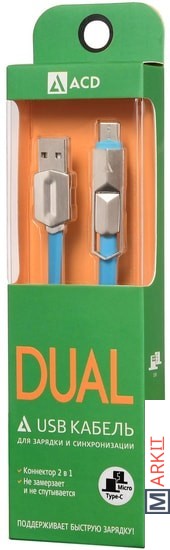 Cменный коннектор 2-в-1 позволяет подключать устройства с Micro USB или Type-C одним кабелем.