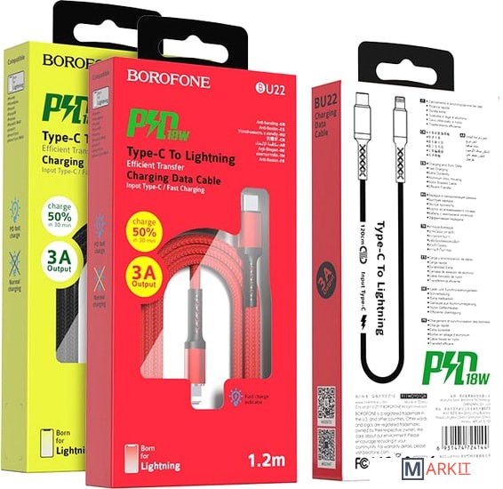Markit » Кабели, адаптеры, разветвители » Кабель Borofone BU22 USB Type-C/Lightning (черный/серый)