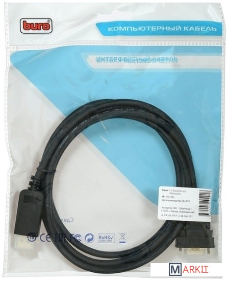 Markit » Кабели, адаптеры, разветвители » Кабель Buro 1.1v BHP DPP_VGA-2 DisplayPort m VGA m 2м