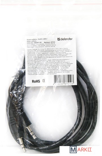 Markit » Кабели, адаптеры, разветвители » Кабель Defender JACK01-05 JACK M- JACK M [87510]