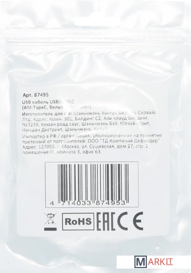 Markit » Кабели, адаптеры, разветвители » Кабель Defender USB08-01C (белый)
