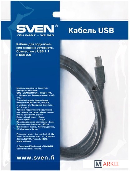 Markit » Кабели, адаптеры, разветвители » Кабель SVEN USB 2.0 Am-Bm (3 м)