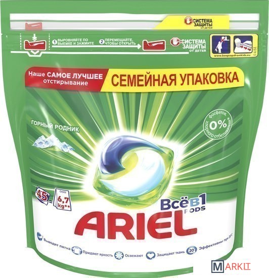 Markit » Средства для посудомоечных машин » Капсулы для стирки Ariel Все в 1 Горный родник (45 шт)