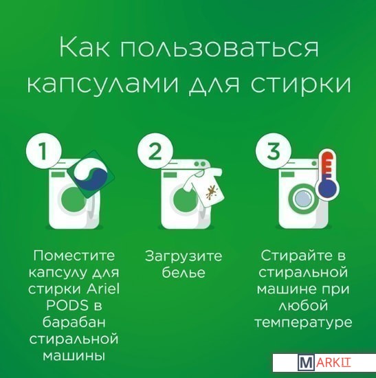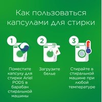 Капсулы для стирки ARIEL Pods Всё-в-1 Горный Pодник - невероятная чистота в одной маленькой капсуле. Капсулы для стирки Ariel Pods Всё-в-1 Горный Pодник имеют уникальный многосекционный дизайн, позволяющий надежно сохранять компоненты в отдельных секциях капсулы до начала стирки, и обладают высококонцентрированными очищающими свойствами. Инновационная пленка капсул для стирки Ariel полностью растворяется при контакте с водой, позволяя мощным технологиям удалять различные виды пятен. Одна капсула содержит необходимую для стирки дозу лучшего жидкого средства от Ariel. Используйте в сочетании с кондиционерами для белья Lenor для придания дополнительной мягкости и свежести. ВНИМАНИЕ. Этот продукт может быть опасен и может нанести серьезные травмы. Храните капсулы Ariel Pods в недоступном для детей месте.